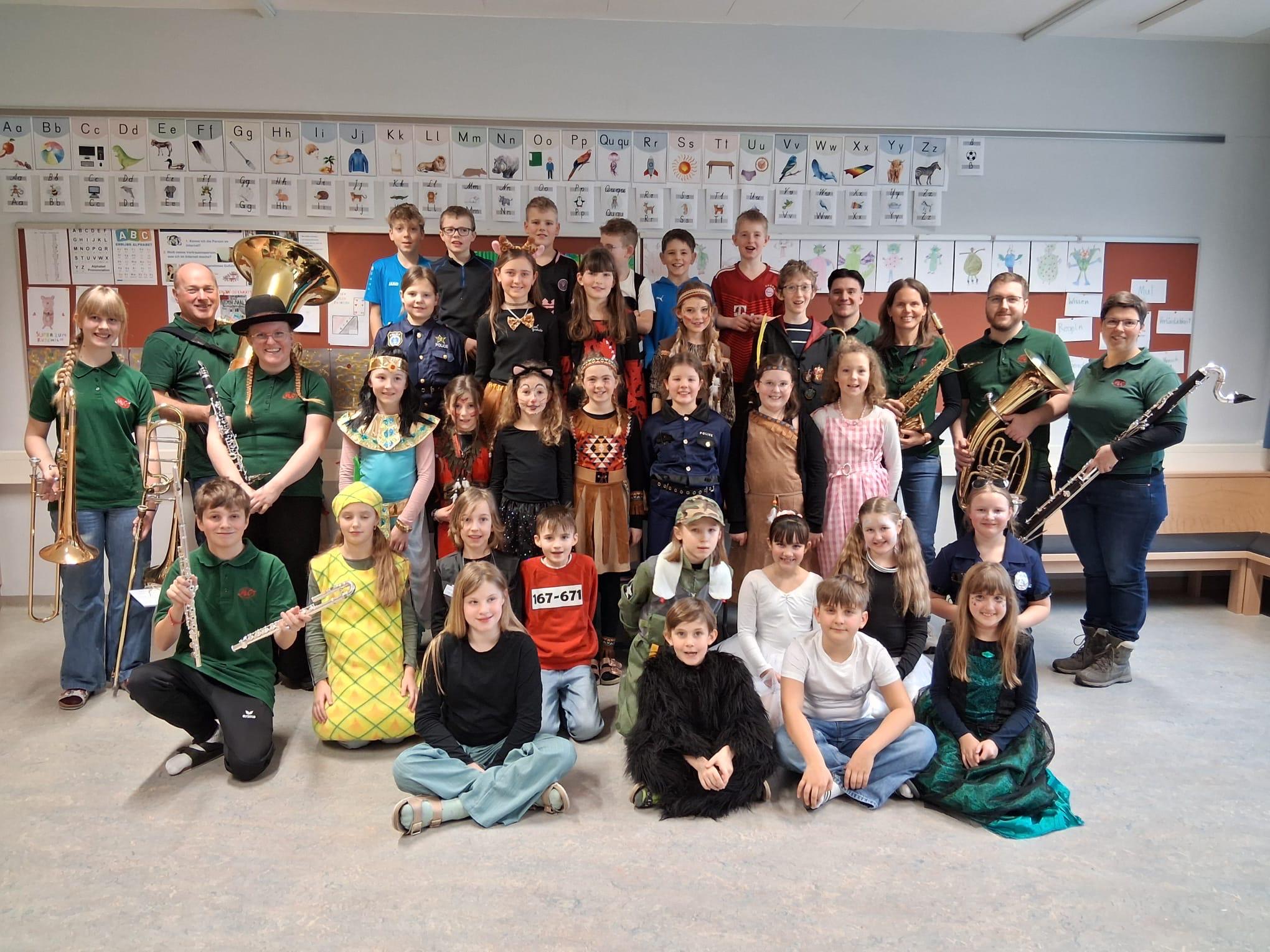Am Faschingsfreitag, dem 13. Februar 2026, besuchte der Musikverein die örtliche Volksschule, um den Kindern die Welt der Blasmusik näherzubringen.